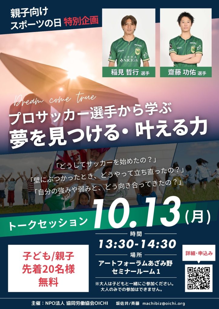 子どもたちに語ってくれる「プロサッカー選手から学ぶ 夢を見つける・叶える力」イベントを10/13に開催しました!